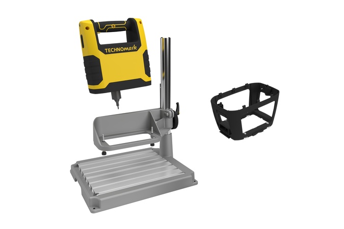 Cenovo dostupný mikroúderový stroj so stojanom. Určený na značenie malých a veľkých dielov. Hlavu možno odňať zo stojana na značenie veľkých dielov.